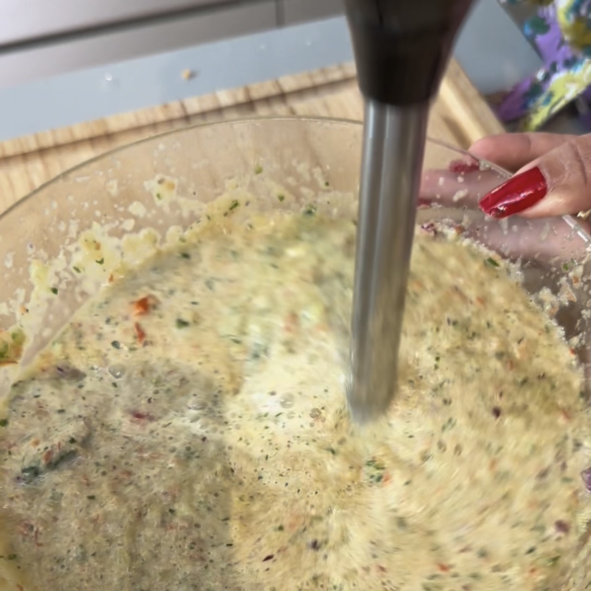 Gebruik een staafmixer of een blender om alle ingrediënten in de kom te pureren tot een gladde en romige soep. Mix goed, zodat er geen stukjes meer overblijven. Proef en voeg indien nodig meer zout, peper of chilipoeder toe.